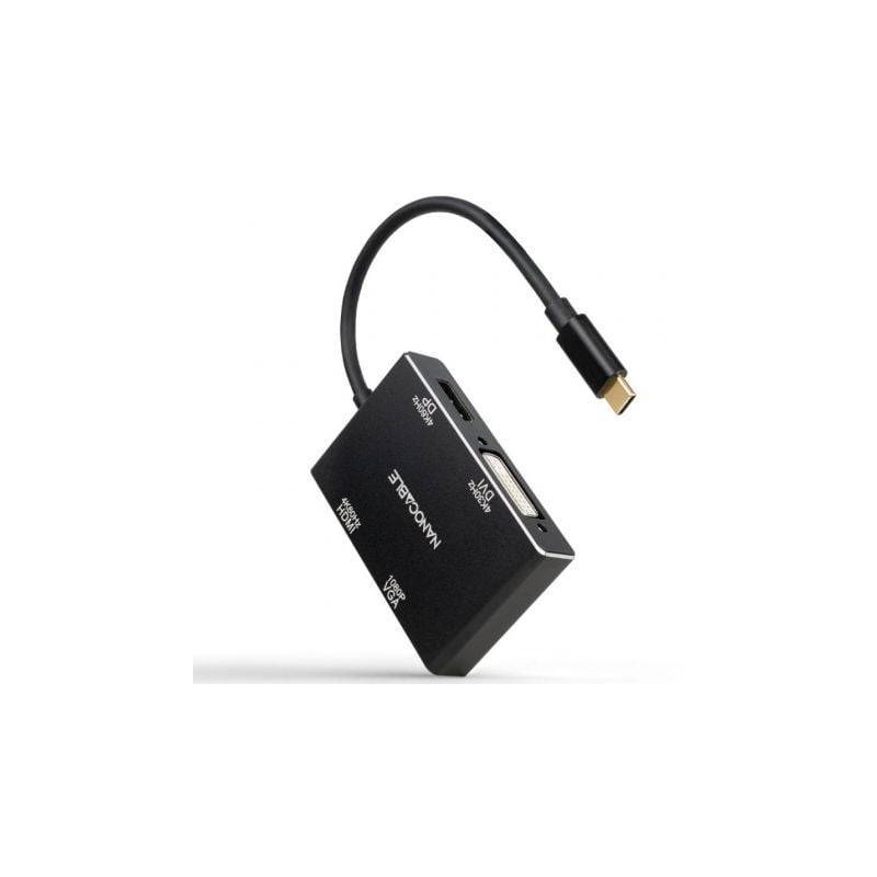 Conversor Nanocable 10.16.4307 Usb Tipo C Macho Vga Hembra Dvi Hembra Hdmi Hembra Displayport Hembra 10cm Negro