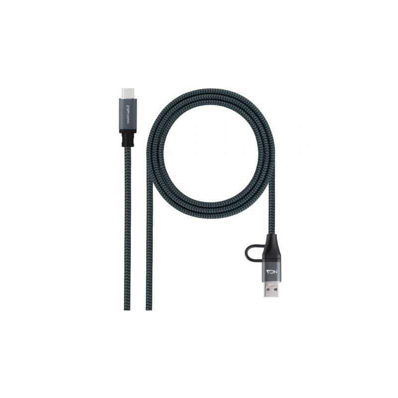 Cable USB 3.2 Tipo-C Nanocable 10.01.4111-L150-COMB/ USB Tipo-C Macho + USB Macho - USB Tipo-C Macho/ Hasta 100W/ 20Gbps/ 1.5m/ Gris y Negro - MiPC Ref: 55121326 Fabricante / Responsable en la UE