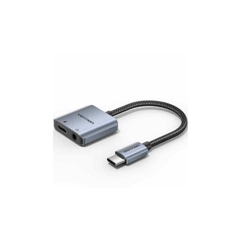 Adaptador Audio Vention Bigha Usb Tipo C Macho Jack 3.5 Hembra Usb Tipo C Pd Hembra Gris