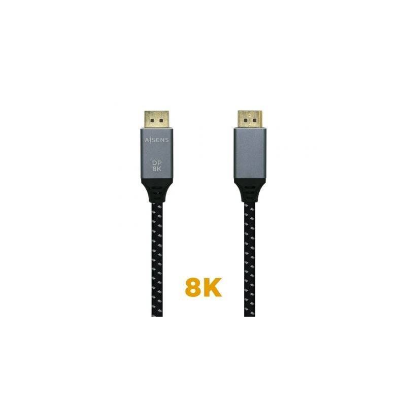 Cable Displayport 1.4 8k Aisens A149 0437 Displayport Macho Displayport Macho 2m Negro Gris
