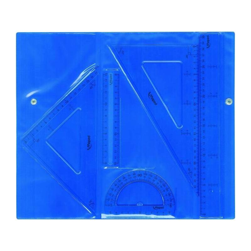 Maped Pack de Instrumentos de Dibujo - Regla de 30cm, Regla de 15cm, Escuadra, Cartabon y Transportador - Estuche con Cierre en Colores Surtidos - Transparentes - MiPC Ref: 6114832 Fabricante / Responsable en la UE