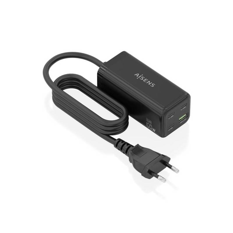 Aisens Cargador Gan 100w 3xusb C Pd3.0 Qc4.0 Qc5.0 1xusb A Qc3.0 Cable 1.4 Metros Color Negro