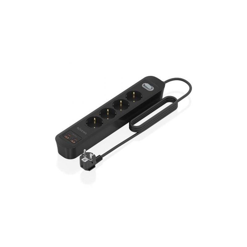 Regleta Con Interruptor Aisens Asps 2a2c13 Bk 4 Tomas De Corriente 2 Usb 2 Usb Tipo C Cable 1.4m Negro
