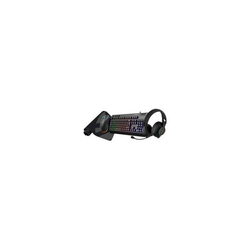 Pack Gaming Teclado Mouse Headset Y Alfombrilla Unyka Nova 4in1 Es Rgb Membrana 7200 Dpi Negro
