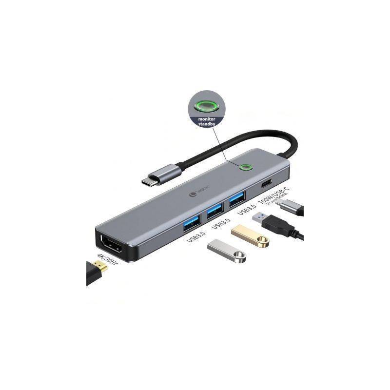Docking Usb Tipo C Leotec Leds05 3xusb 1xusb Tipo C Pd 1xhdmi 4k Gris