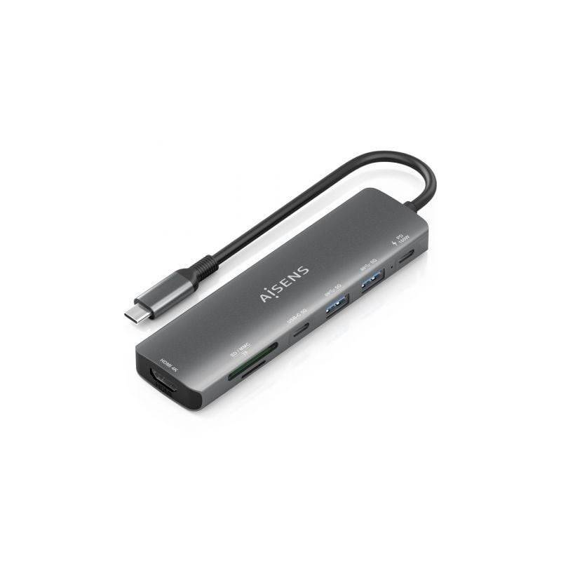 Docking Usb Tipo C Aisens Asuc 7p026 Gr 1xhdmi 4k 2xusb 1xusb Tipo C 1xusb Tipo C Pd 1xlector Tarjetas Gris