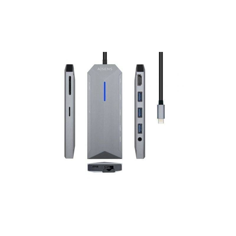 Docking Usb Tipo C Aisens Asuc 9p001 Gr 1xhdmi 4k 3xusb 1xrj45 1xaudio 1xlector Tarjetas 1xusb Tipo C Pd Gris