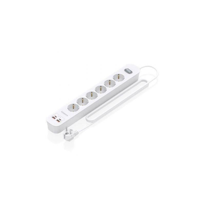 Regleta Con Interruptor Aisens Asps 2a2c16 W 6 Tomas De Corriente 2 Usb 2 Usb Tipo C Cable 1.4m Blanco