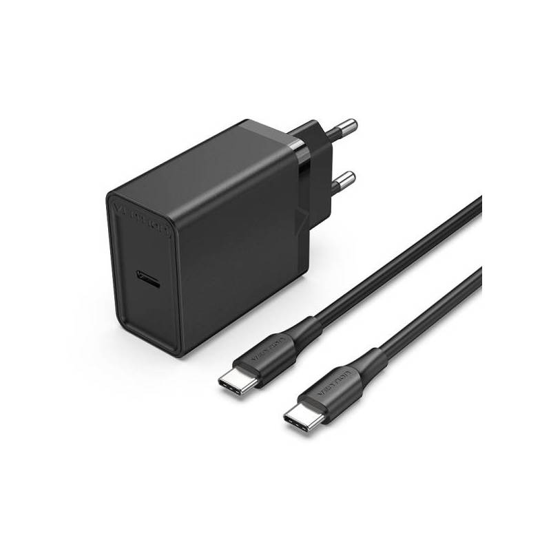 Vention Cargador De Pared Usb C 25w Cable Usb C 1m Pd3.0 Color Negro