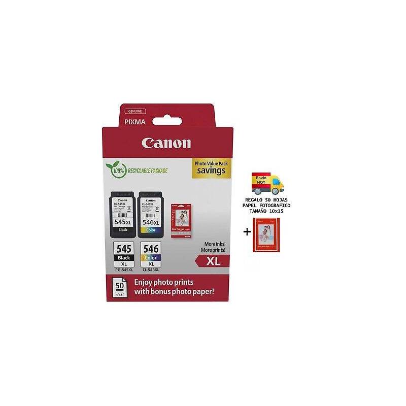 Pg 545xl Y Cl 546xl Pack Lote 2 Tinta Negro Y Color Canon Original Papel Foto