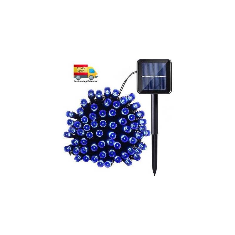 Luz Solar Guirnalda 5m Azul Jardin Fiestas Varios Modos Parpadeos Exterior