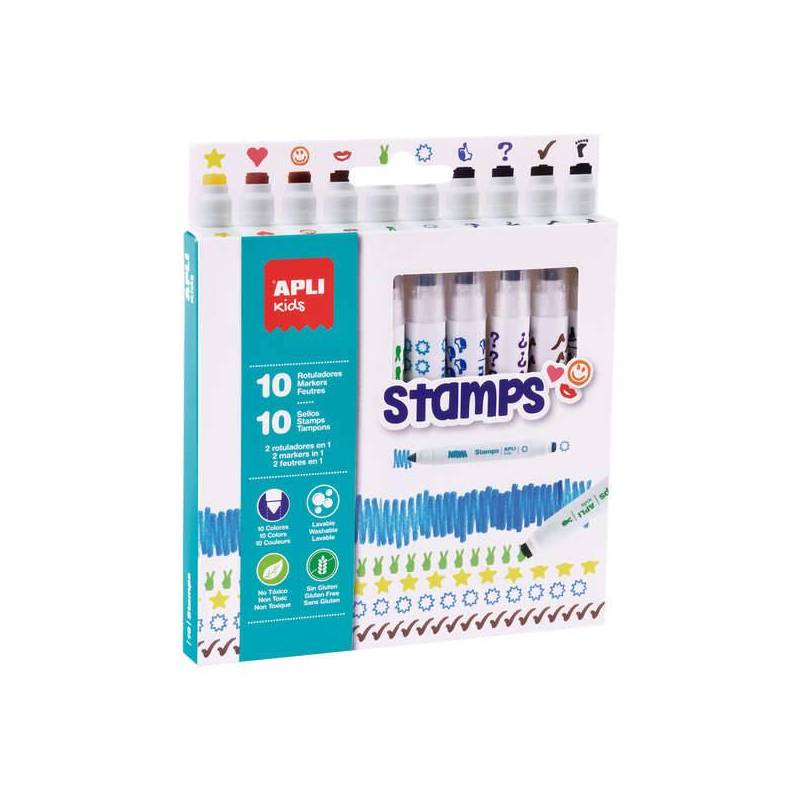 Apli Kids Stamps Pack De 10 Rotuladores Con Doble Punta Sello Y Rotulador 10 Colores Sellos Diferentes Puntas Bloqueadas De