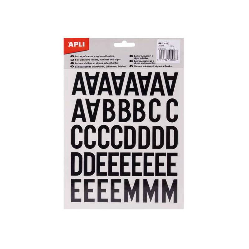 Apli Letras Adhesivas De Palo Mayusculas Altura 30mm Color Negro Pack De 4 Hojas Con 153 Letras