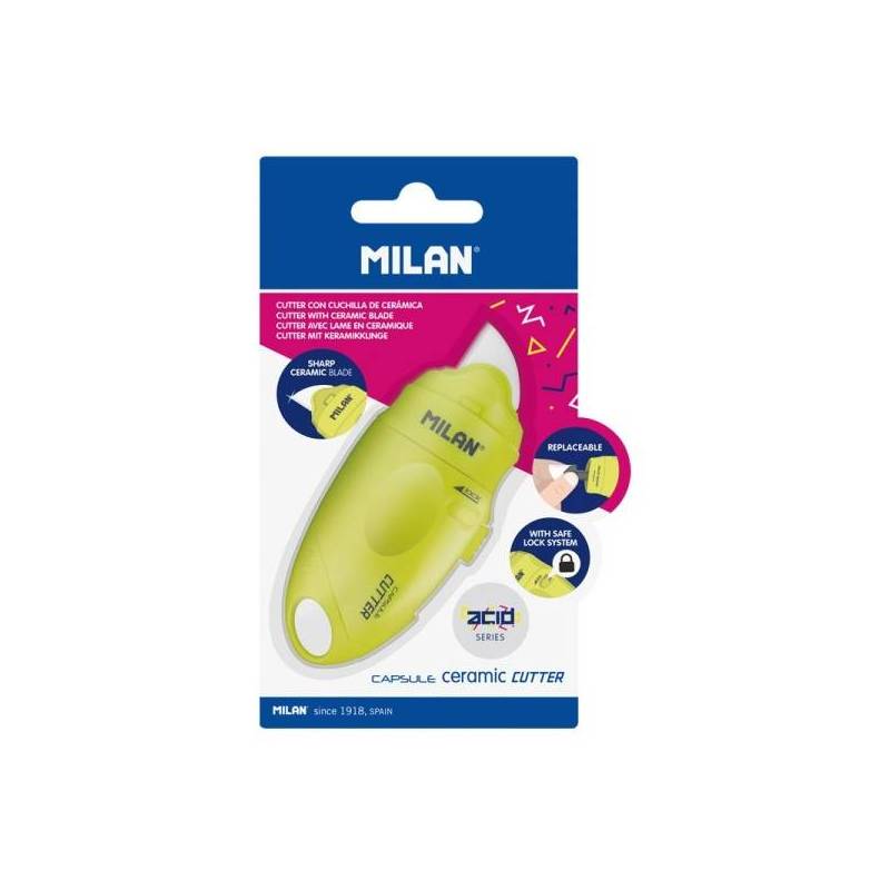 Milan Serie Acid Capsule Cutter de Hoja Ceramica Reemplazable - Tamaño Bolsillo - Diseño Ergonomico - Sistema de Bloqueo - Color Amarillo - MiPC Ref: 6315098 Fabricante / Responsable en la UE