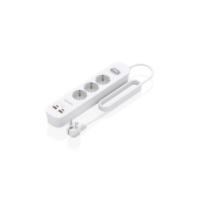 Regleta Con Interruptor Aisens Asps 2a2c10 W 3 Tomas De Corriente 2 Usb 2 Usb Tipo C Cable 1.4m Blanco