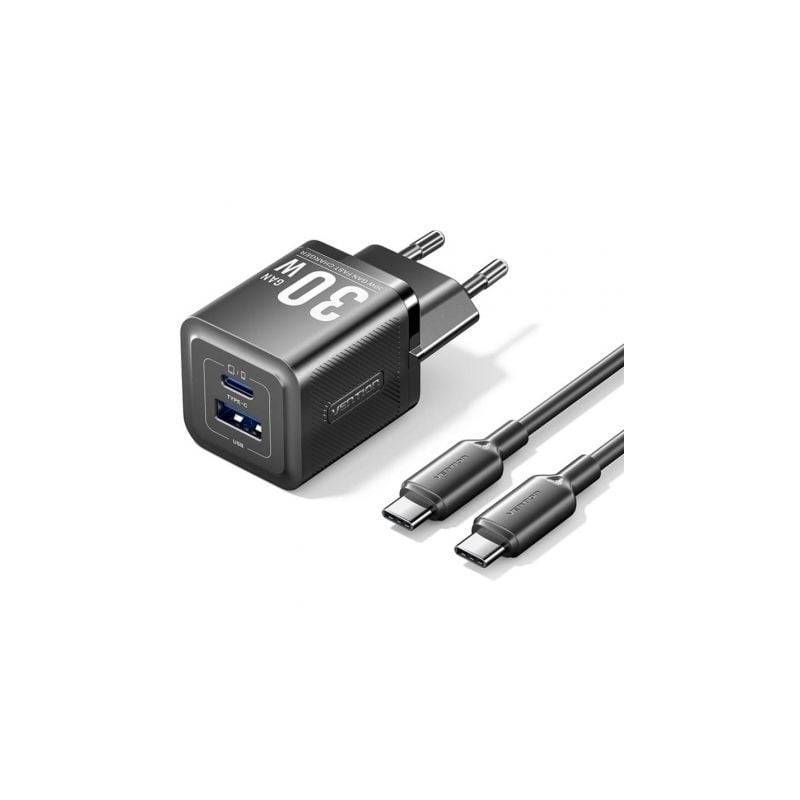 Cargador de Pared GaN Vention TZ-FEQB0-EU-01/ 1xUSB Tipo-C/ 1xUSB + Cable USB Tipo-C/ 30W - MiPC Ref: 55112358 Fabricante / Responsable en la UE