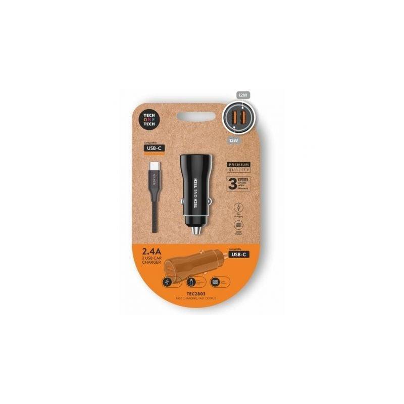 Cargador De Coche Tech One Tech Tec2803 2xusb Cable Usb Tipo C 12w