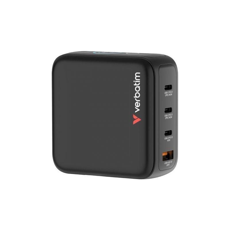 Cargador De Pared Universal Gan Para Viaje Verbatim Mini Gan Charger Con Pantalla 3xusb Tipo C 1xusb 140w