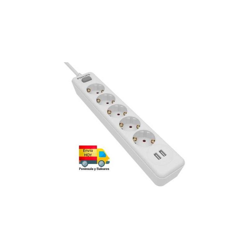 REGLETA ENCHUFE 5 PUERTOS y 2 x USB PHILIPS CARGADOR MOVIL CARGA RAPIDA - MiPC Ref: 880270 Fabricante / Responsable en la UE