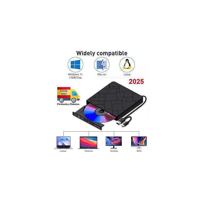 Grabadora Dvd Cd Externa Usb Y Usb C Reproductor Portatil Windows Pc Envio Hoy