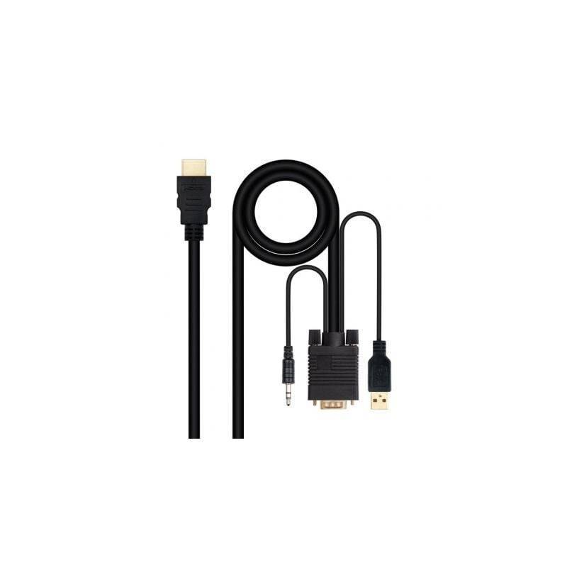 Cable Conversor Nanocable 10.15.4350 Hdmi Macho Vga Macho Jack 3.5 Macho Usb Macho 1.8m Negro