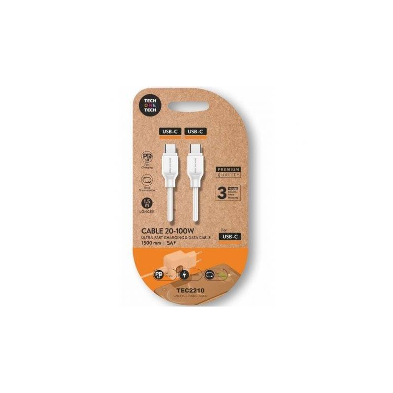 Cable USB 2.0 Tipo-C Tech One Tech TEC2210/ USB Tipo-C Macho - USB Tipo-C Macho/ Hasta 100W/ 480Mbps/ 1.5m/ Blanco - MiPC Ref: 55121160 Fabricante / Responsable en la UE