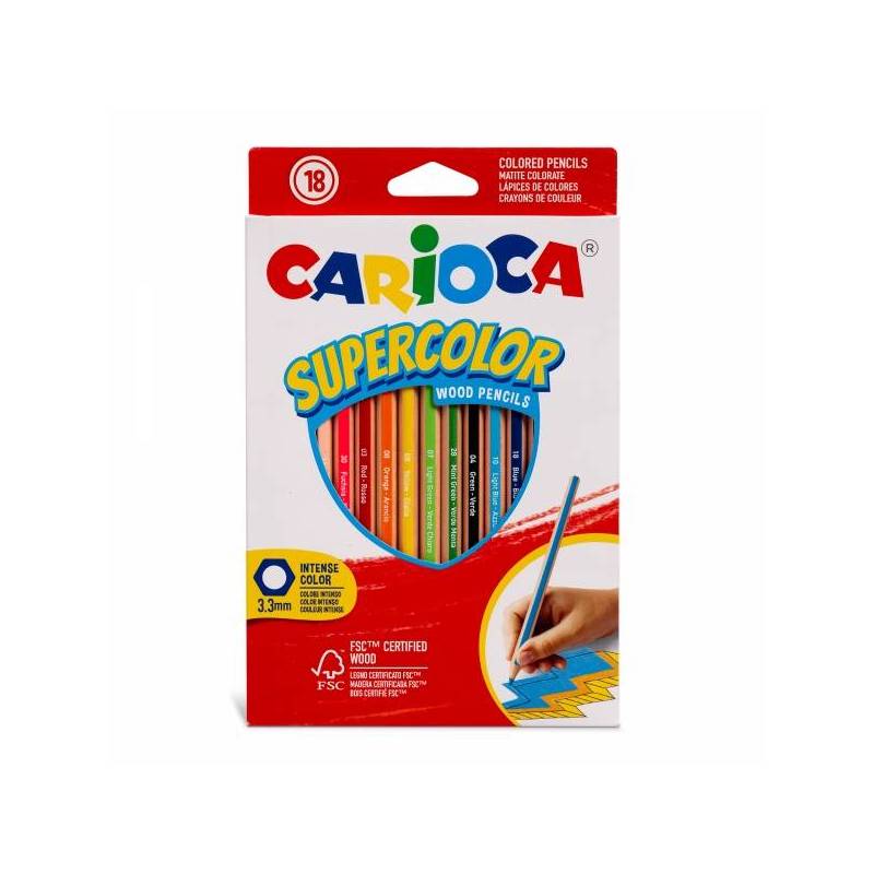 Carioca Supercolor Pack De 18 Lapices De Colores Cuerpo De Madera Hexagonal Colores Intensos Y Gran Opacidad Mina De 3.3mm