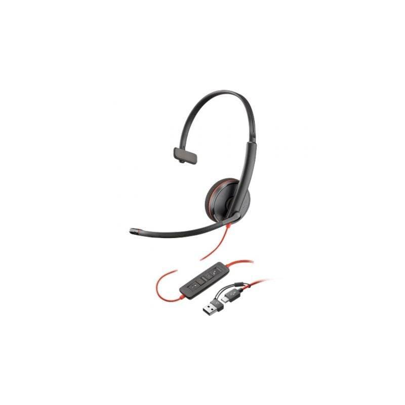Auricular Poly Blackwire 3210 Adaptador Usb C A Con Microfono Usb Tipo C Bulk Negro